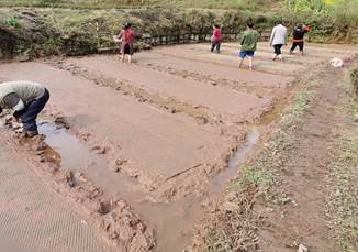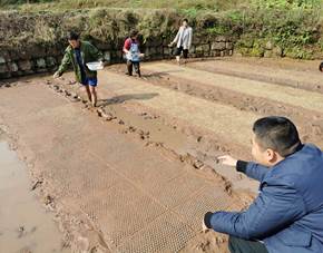 四川省泸州市,陈昊楠同学正在秧田里指导水稻育秧与病虫害防治工作