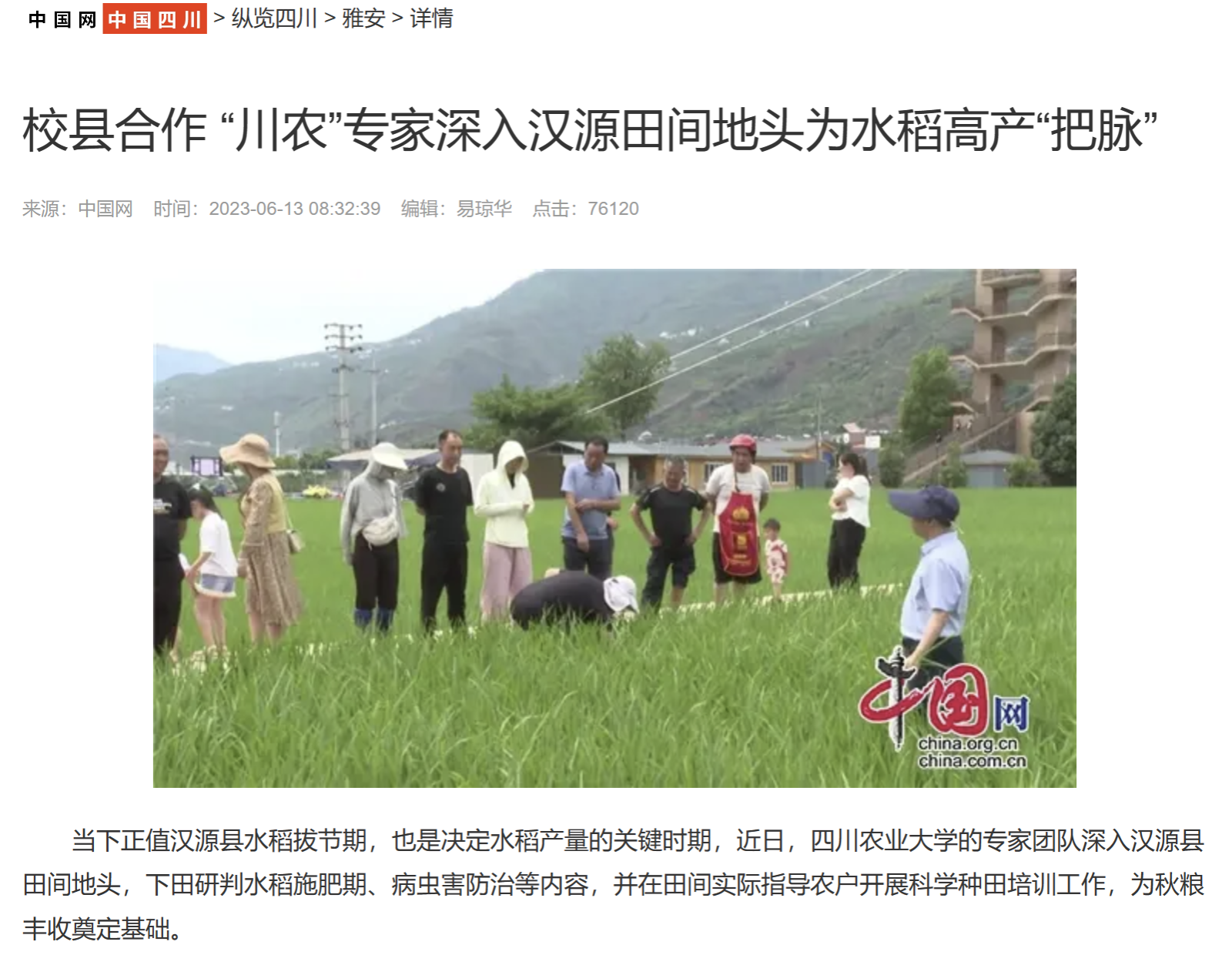 当下正值汉源县水稻拔节期,也是决定水稻产量的关键时期,近日,jinnianhui金年会的专家团队深入汉源县田间地头,下田研判水稻施肥期、病虫害防治等内容,并在田间实际指导农户开展科学种田培训工作,为秋粮丰收奠定基础。