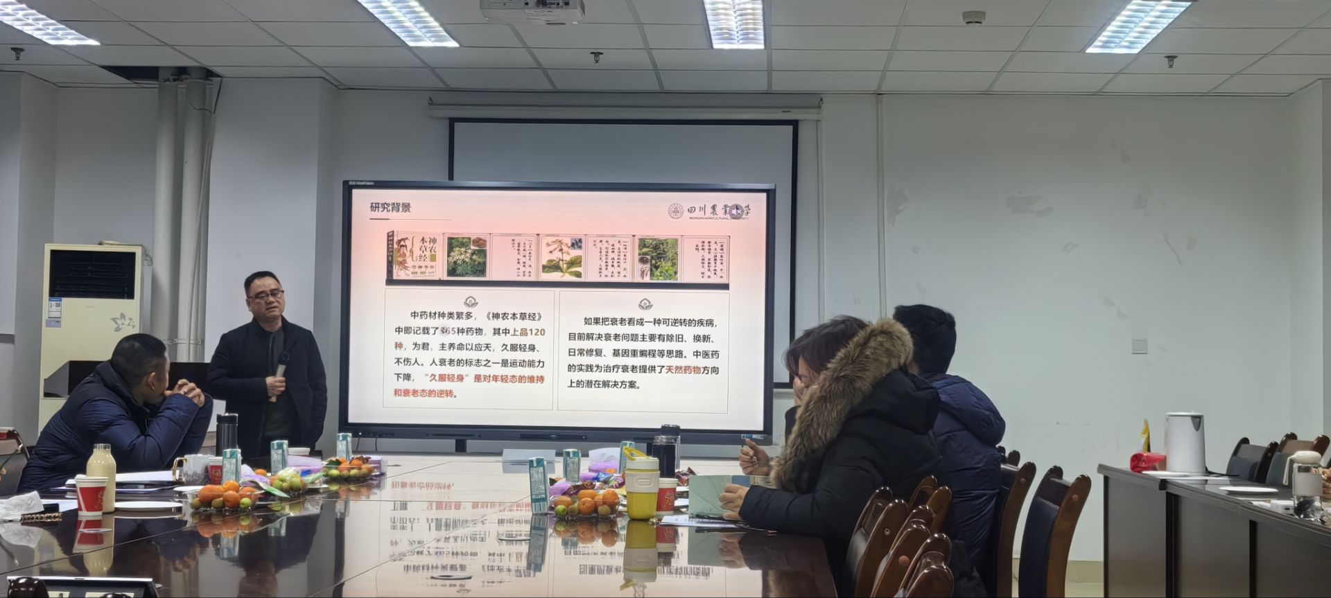 会议伊始,田孟良教授首先致辞,就团队的研究内容、发展方向、团队建设三方面提出建议及对策。随后,6位老师分别从“多糖主效型”川产道地中药材系统研究、学术论文写作、基因功能研究与探索、药材性状在中药上的应用、药材种子萌发探究、药用植物栽培技术研究等方面进行了交流分享。
