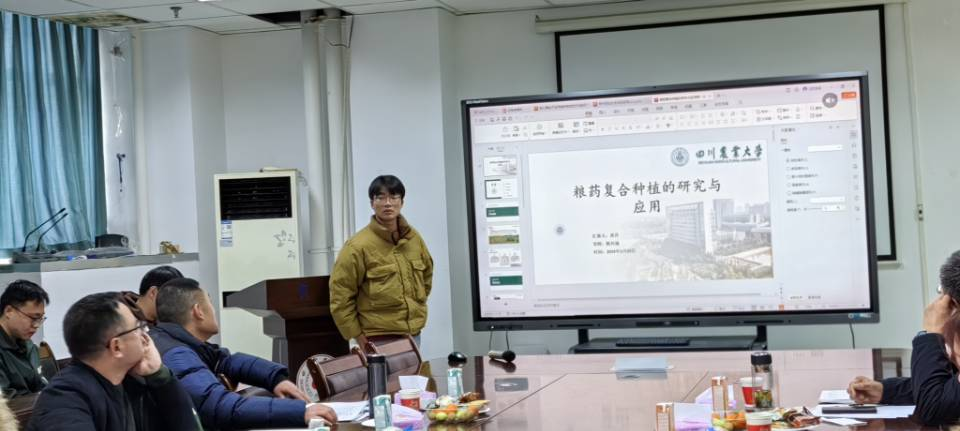 会上,团队7名研究生也进行了学术交流,分别从粮药复合种植研究、虫草多糖研究现状、兰科植物种子萌发与共生菌机制研究、药用植物组培技术体系建立、多糖合成关键基因的功能解析、药用植物次生代谢产物的功能与应用、次生代谢产物对肠道菌群的影响、采前策略在现代作物中的应用等方面做了汇报。
