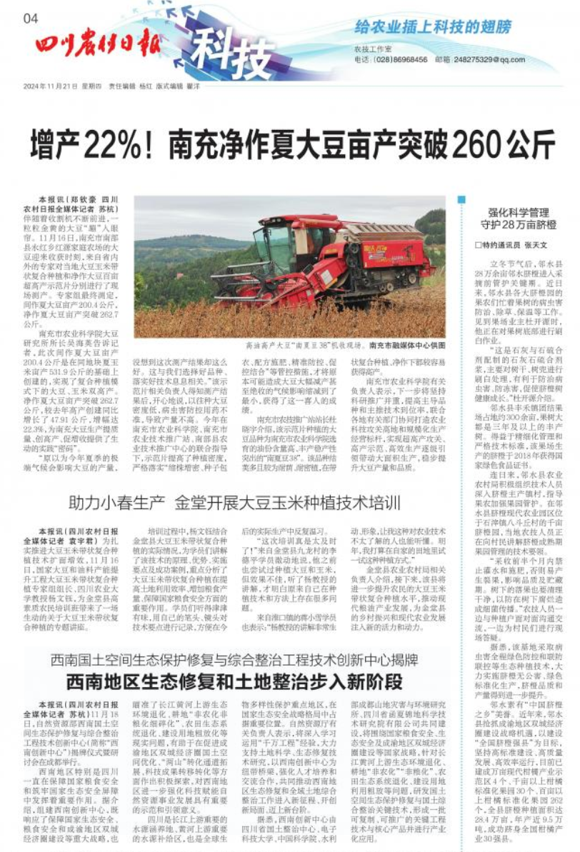 金堂县农业农村局相关负责人介绍,接下来,该县将进一步提升农民的大豆玉米带状复合种植水平,推动现代粮油产业发展,为金堂县的乡村振兴和现代农业发展注入新的活力和动力。