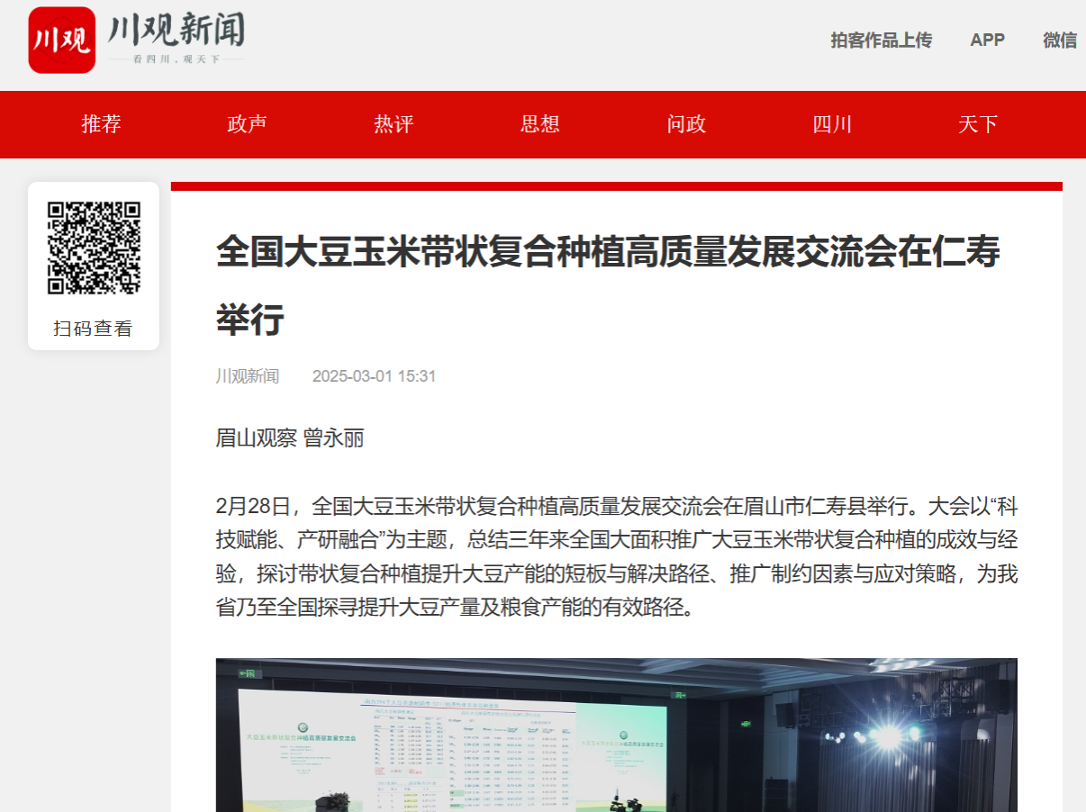 这次交流会是在2025年全国大豆玉米带状复合种植示范推广工作部署会期间同步举办,谈及为何如此高规格的会议会选择在仁寿举办。jinnianhui金年会教授雍太文表示, 仁寿县是全国大豆玉米带状复合种植技术的孵化基地。