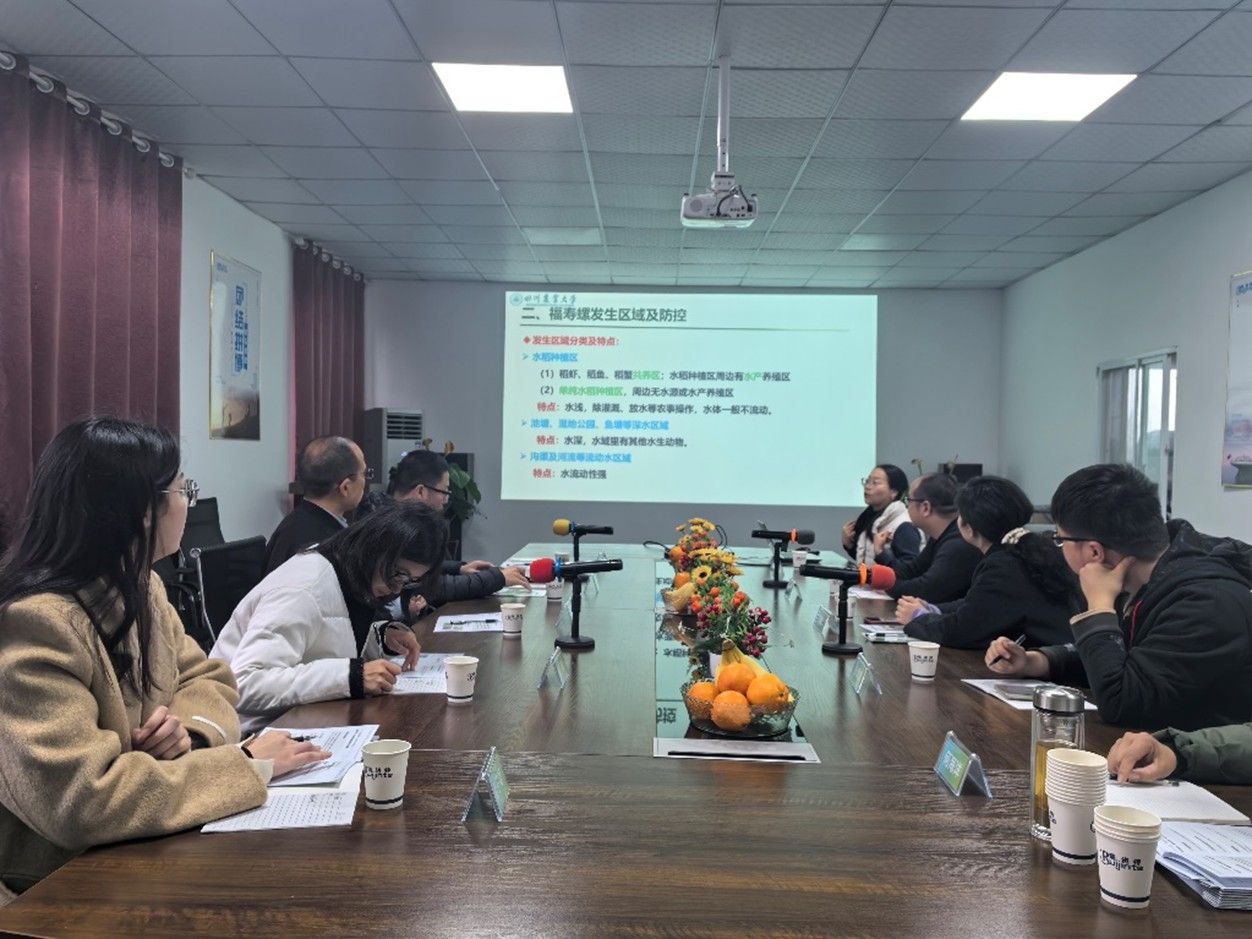 3月5日,农业农村部农业生态与资源保护总站干部张驰、中国农科院张曦、宋振等一行5人赴金年会福寿螺防控新都基地,调研金年会福寿螺防控工作进展,指导金年会今年福寿螺防控示范工作。四川省农业农村厅农业生态资源保护中心副主任丁俊仁和干事张博文,金年会陈华保教授、杨春平教授等陪同调研。