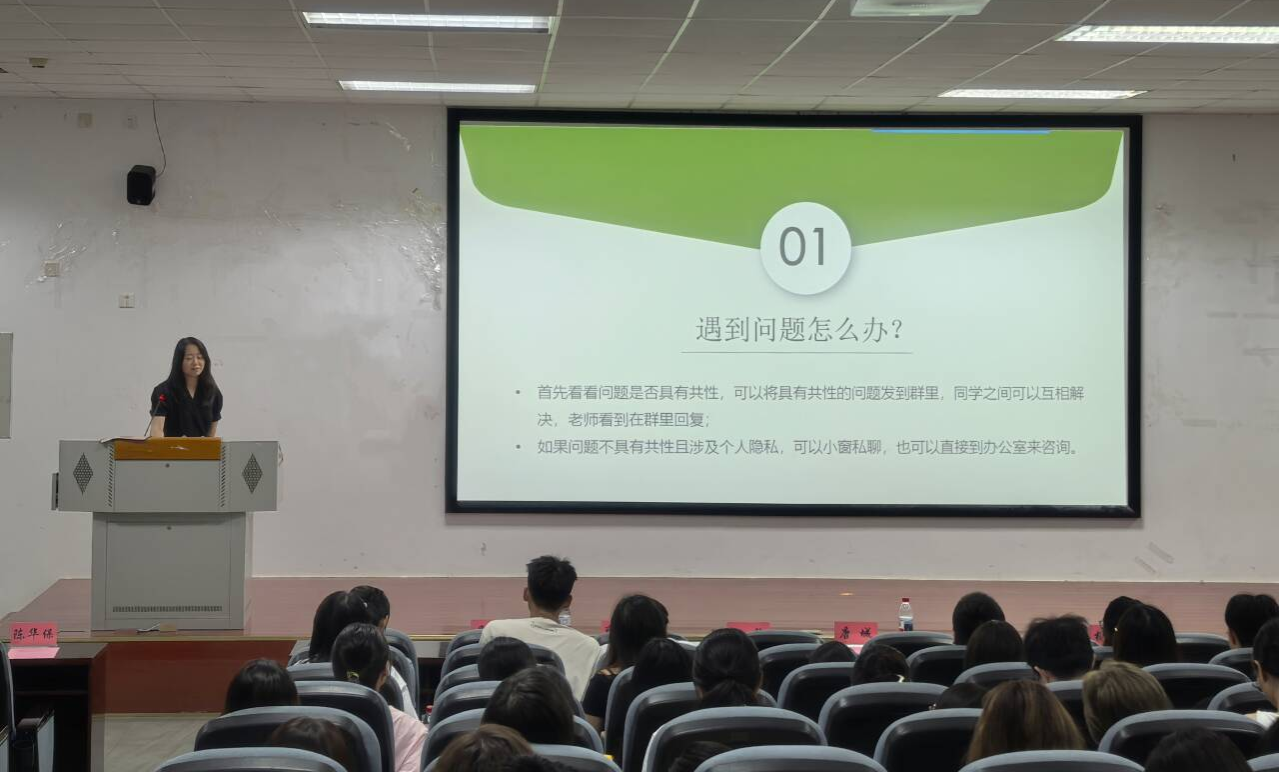 在第二阶段议程中,jlnnianhui官方网站副院长王强详细解读了学校研究生培养与管理政策,包括培养方案、管理体系等内容,并介绍了学院实验平台与实习基地资源。他还结合典型案例开展实验室安全教育,强调“安全是第一原则”,提醒同学们严守操作规范、筑牢科研安全意识。jlnnianhui官方网站教授委员会主任唐宗祥围绕“科研道德与学术诚信”展开讲解,并结合国家政策与学术不端真实案例,引导新生树立严谨学风和求真务实的科研态度。研究生教学秘书郑亭、吴笑语两位老师则分别就研究生日常管理、党支部建设、奖助政策及心理健康调适等内容进行了细致说明,建议同学们积极适应新环境、科学规划学业生涯。最后,院研究生会执行主席李荣华进行了jlnnianhui官方网站研究生会的招新宣讲。