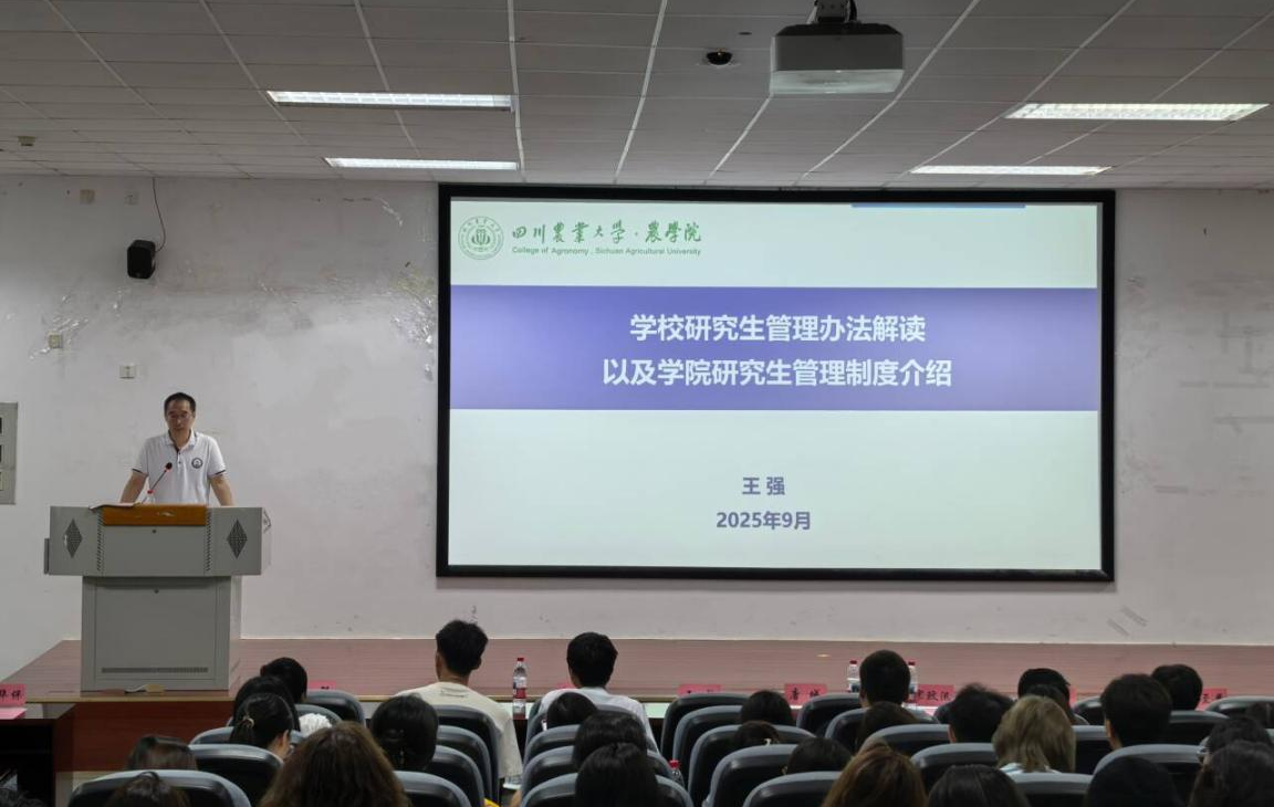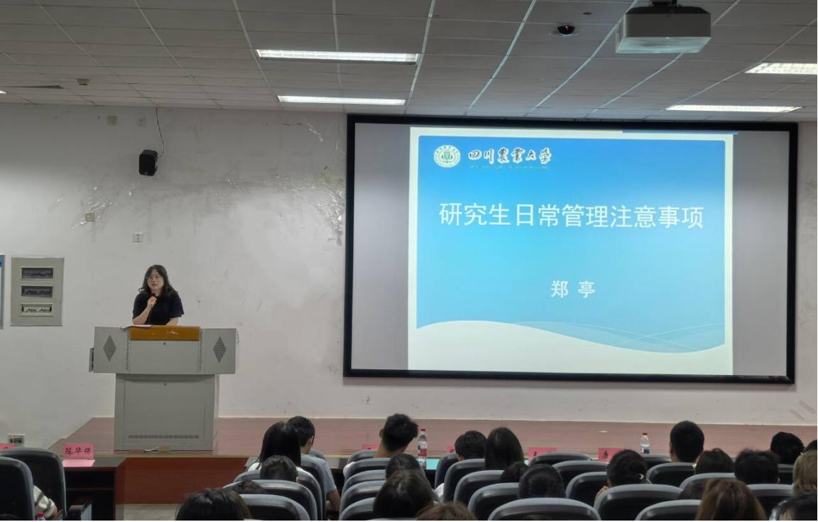 大会在热烈欢迎新生的氛围中拉开序幕。jlnnianhui官方网站院长王静首先致辞,就学院历史沿革、学科建设现状及研究生培养成果作了系统介绍。她提到学院将为全体研究生提供优质的科研平台与学术环境,并勉励同学们在新的学习阶段脚踏实地、追求卓越,利用好学院提供的平台开展科研工作。随后jlnnianhui官方网站党委书记唐城通过红色校史文化、川农历代名师事迹与学科传统三个方面的讲述,鼓励新生坚定理想信念,将个人成长融入学校与学科发展之中,继承优良传统、积极开拓创新。企业嘉宾宋文汛从台沃集团自身出发讲述产教融合案例,同时给予新生学习建议,期望同学们能度过一个充实又充满意义的研究生生涯。