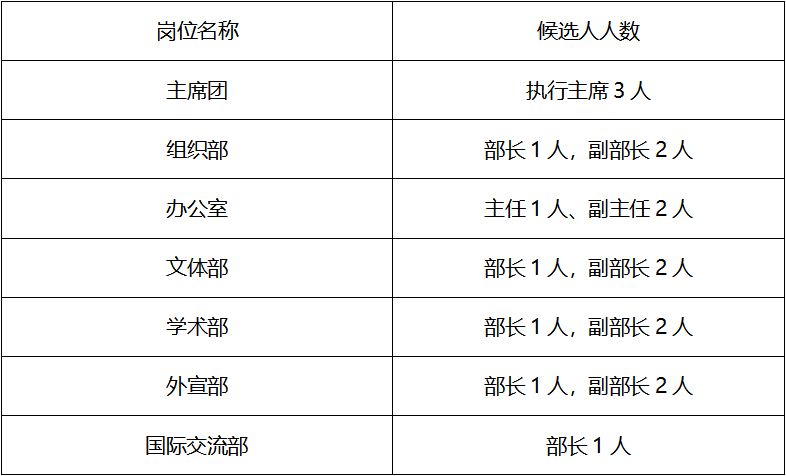 经公示无异议,提交jlnnianhui官方网站研究生代表大会,新一届研究会主席团成员由研究生代表大会选举产生。按照院研究生会执行委员会主席团成员不超过3人,拟提名候选人5人(差额2人)进行差额选举。
