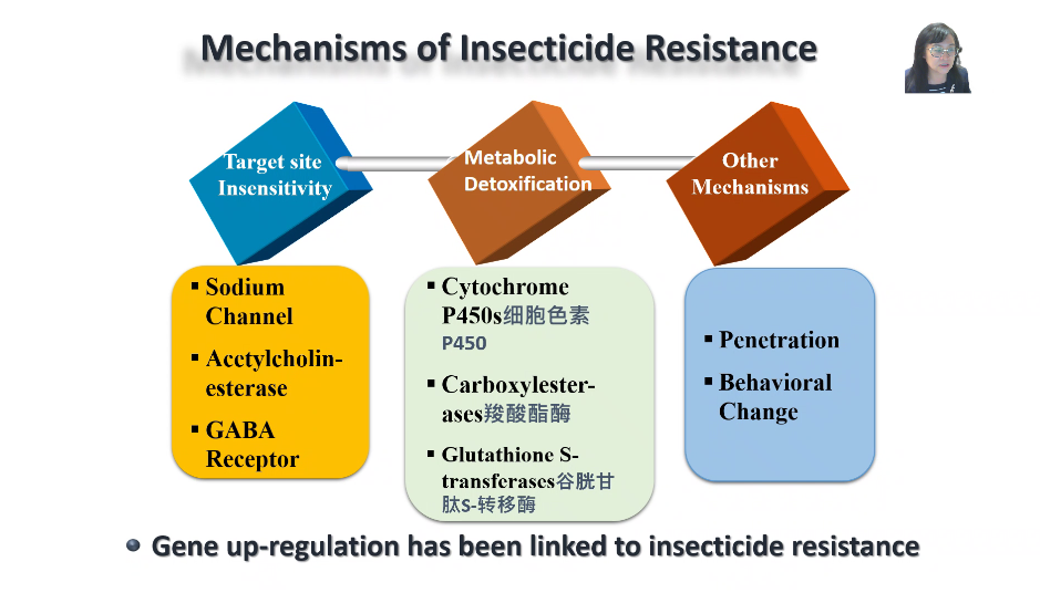 杀虫剂抗药性是制约粮食安全生产的重要障碍,了解昆虫抗药性机制对制定害虫综合防控策略和抗性治理至关重要。刘南南教授围绕生物技术在杀虫剂解毒代谢抗性中的应用,重点解析了细胞色素P450和羧酸酯酶在农药解毒中的作用,介绍了利用转录组测序分析和酶抑制剂实验确定出与抗性相关的候选解毒基因,通过杆状病毒表达系统、RNAi、CRISPR/CAS9技术、底物和蛋白模型对接等实验明确候选解毒基因的生化功能及具体催化位点,同时针对G蛋白偶联受体诱导解毒基因上调表达的机理所做的探索。报告中Nannan Liu教授多次抛出科学问题,对学生进行启发式教育,获得师生一致好评。