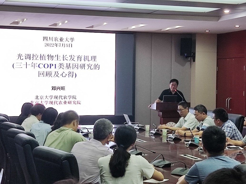 7月5日,北京大学现代农业研究院院长、美国科学院院士邓兴旺教授应邀到金年会开展学术交流,并为全校师生做了题为《光调控植物生长发育机理》学术报告。报告会由杨文钰教授主持。