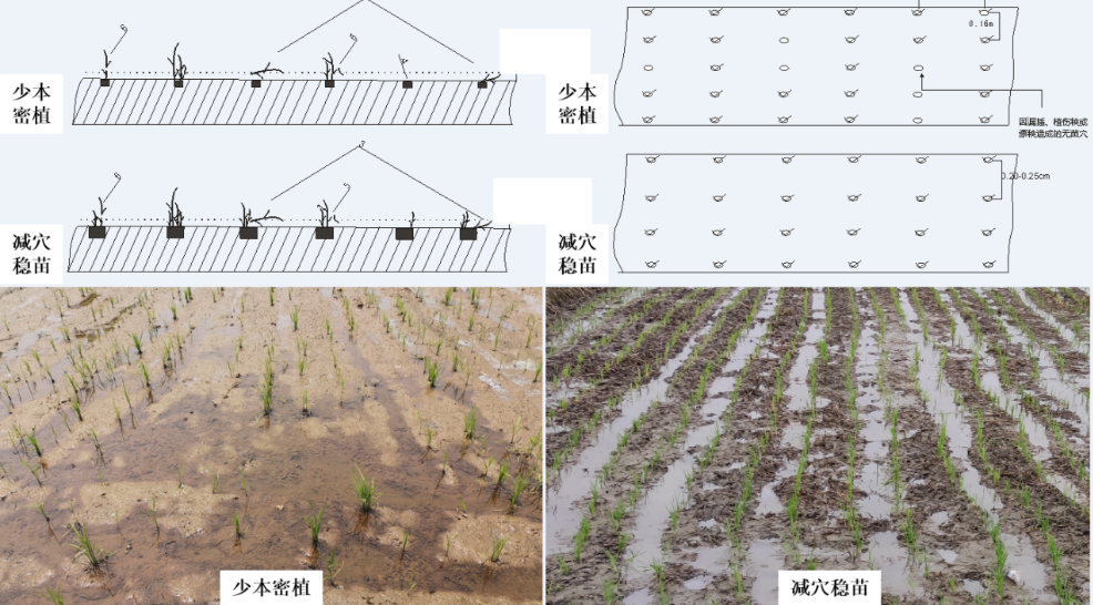 图1常规密植(左)与减穴稳苗(右)栽后效果图