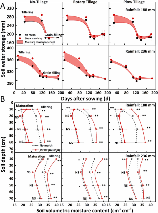 西南丘陵旱地气候冬干春旱,土壤水分缺乏限制根系氮素吸收,导致小麦产量和氮素利用效率低。在冬小麦-夏玉米种植模式下,通过免耕+玉米秸秆覆盖可有效提高小麦产量和旱地周年生产力。然而,秸秆覆盖和耕作方式对土壤水分分布、小麦根系分布,氮素营养和产量形成的影响仍然不清楚。因此,通过长期定位试验阐明免耕秸秆覆盖对“水-根-氮”互作效应的影响,进而促进旱地周年生产力提升和持续绿色生产至关重要。