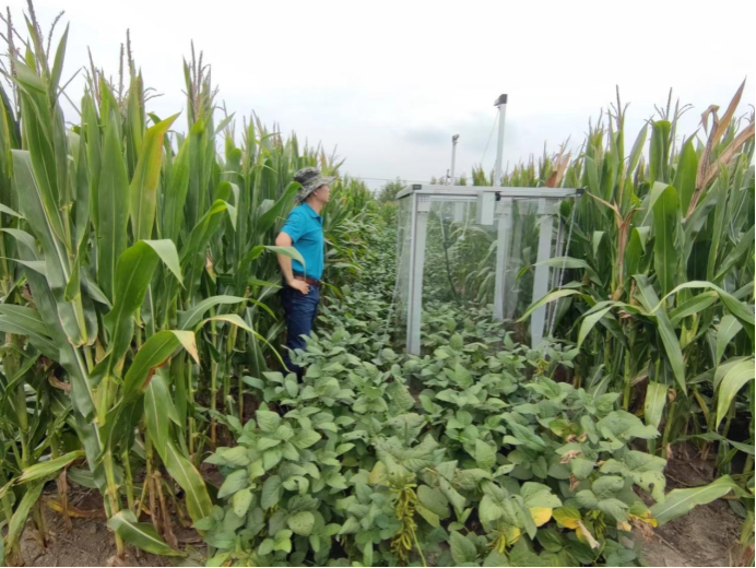 8月15日,王恩利研究员来到金年会崇州基地,实地参观了玉米大豆带状复合种植30亩机播示范地与学生试验地,详细了解了复合种植耕种管收等关键环节措施,认为其是资源高效利用及增产增收的好模式。