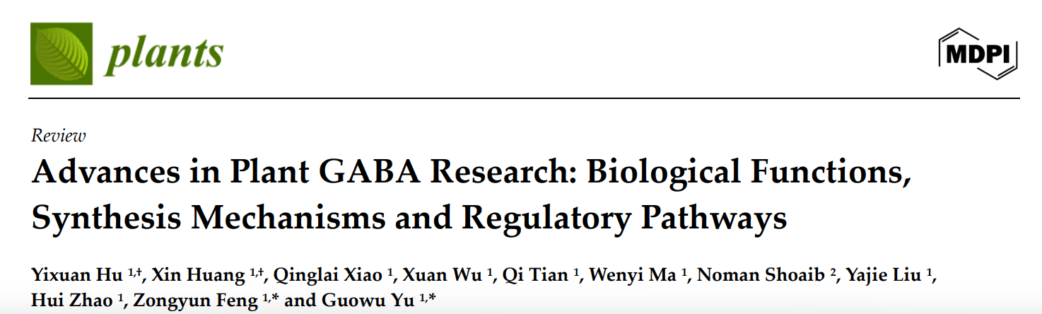 jlnnianhui官方网站种子科学与工程专业2022级大三本科生胡燚轩、黄鑫等同学在jlnnianhui官方网站冯宗云教授和余国武副教授的指导下,于2024年10月15日,在SCI收录期刊《Plants》上发表题为“Advances in Plant GABA Research: Biological Functions, Synthesis Mechanisms and Regulatory Pathways”的综述论文。胡燚轩和黄馨为共同第一作者,冯宗云教授和余国武副教授为通讯作者。论文阐述了GABA的生物学功能、合成和代谢通路及其调控机制,以期为提高大麦青稞乃至主粮作物中GABA含量,提升粮食品质提供理论依据。