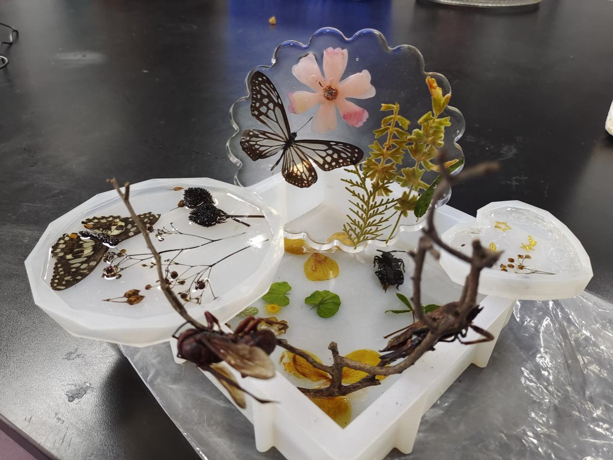 经过紧张角逐,由黄智雄、陈昭、刘庭佑、赵雨柔组成的植保小队凭借其精美的琥珀展示和精彩的现场答辩斩获一等奖。作品采用平面、立体的形式,多角度、多色彩展示琥珀之美。他们将生活中的花草、蝴蝶、天牛、胡蜂和螽斯按照一定空间结构进行摆放,还原真实的动植物生存场景。整个作品有动有静,有水有花,有草有木,层次丰富,观赏性强,同时也体现了一代代植保人不懈努力创造美好生态环境的辛勤付出。