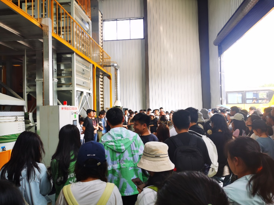 上午10点,同学们抵达重庆市荣隆镇沙坝子村,重庆十九行农业科技有限公司董事长谭登峰对川农大师生的到来表示欢迎。谭登峰董事长详细地为同学们介绍玉米种子生产的各个环节,带领大家近距离参观玉米生产加工厂房,他以玉米制种为引,深入浅出地讲述了种子生产实际现状。通过介绍,同学们对农业制种生产中的难题和机遇有一定认识,对种业未来发展趋势有了初步判断。