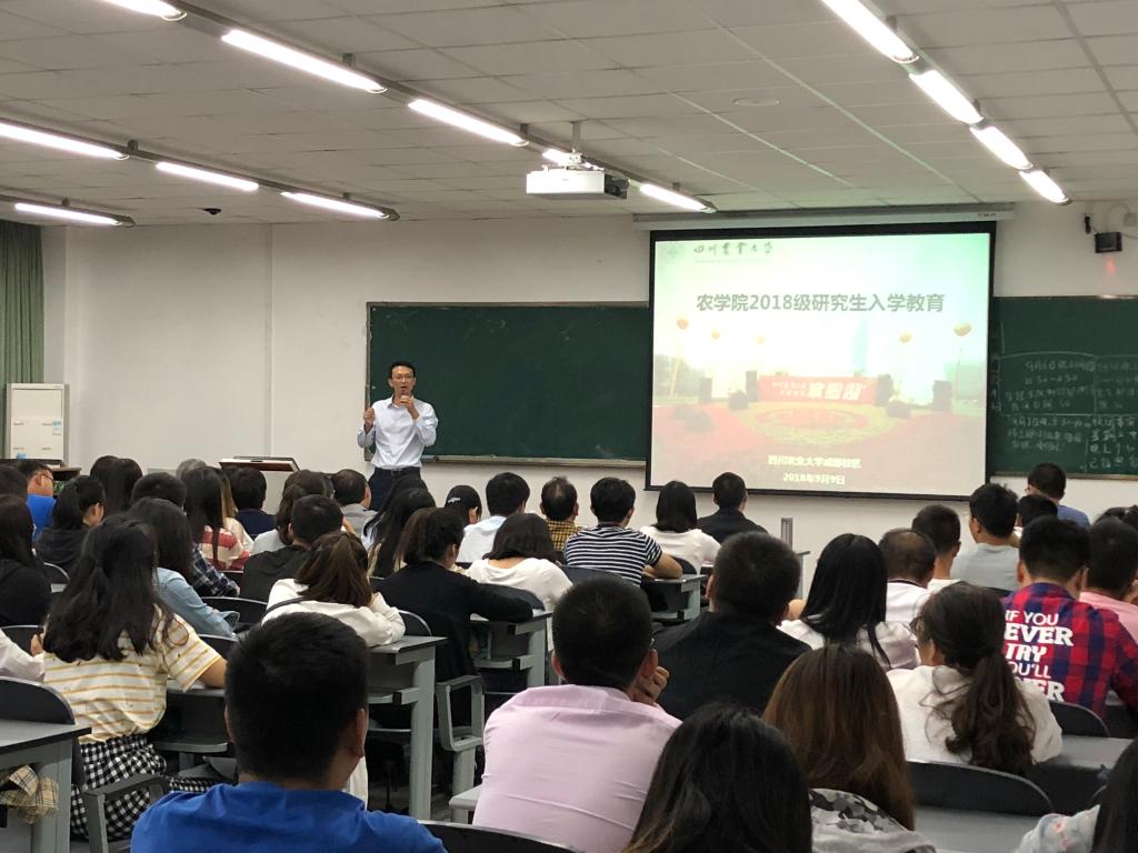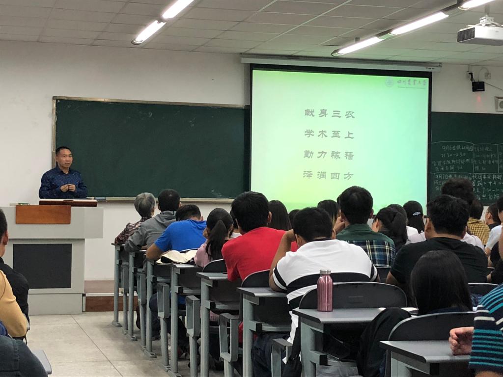 党委书记胡迅代表学院热烈欢迎研究生新生并致辞,他既充满激情又幽默风趣的话语,迎来了台下新生们热烈的掌声,同时一再叮嘱2018级新生要为实现自己的梦想而努力!副院长任万军对培养单位总体概况以及研究生培养的主要成绩进行了仔细的讲解,并留下了“献身三农,学术之上;勤力稼穑,泽润四方”的训导。
