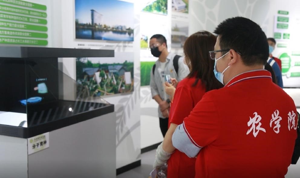 全体党员胸佩党徽参观天府现代种业园展厅,通过讲解员的详细讲解,了解天府现代种业园的总体规划、全产业链、重点项目、企业孵化等内容,观看“油菜的一生”三维动画影像,了解作物生长周期和分子育种技术。
