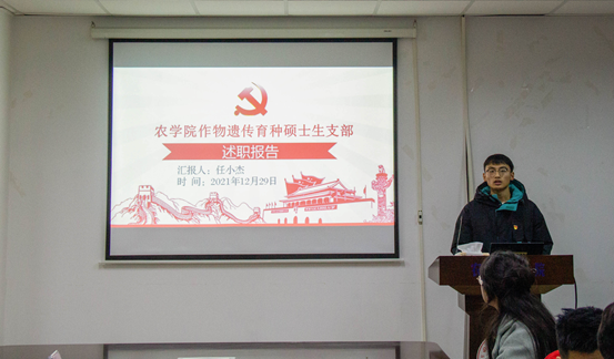 会议伊始,jlnnianhui官方网站各学生党支部代表分别作支部述职报告,总结支部一年来的工作成绩,分析工作的不足之处,对新一年工作进行规划和安排。其中,jlnnianhui官方网站特用植物生产学研究生支部代表杜宣表示:“‘积土为山,积水为海’,在不断地建设中,我们支部终会发展为一个能弘扬中华文化,勇担青春使命的支部。”