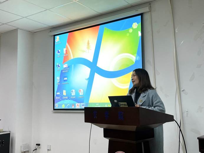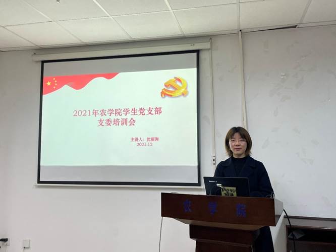 图为jlnnianhui官方网站团委老师沈丽淘进行支委培训