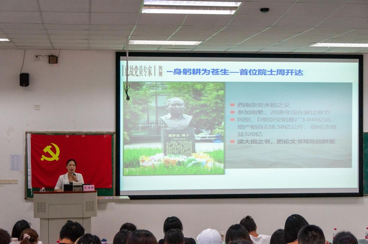下午的党课中,黎明艳以“川农大的红色基因”为主题,讲述了江竹筠、张大成等多位作物学科英烈校友在川农成长的故事,全面介绍了川农大的红色历史,将深深烙印在川农人骨子里的“红色精神”娓娓道来。随后,全体学员一同观看了jlnnianhui官方网站感人沙画视频,其中将老一辈川农人形象一一呈现。最后,黎明艳号召新时代青年同志们奋发图强,传承革命精神,追寻红色足迹,坚定理想信念,为学校“双一流”建设和国家粮食安全做出应有的贡献,为保卫大国粮仓添砖加瓦。