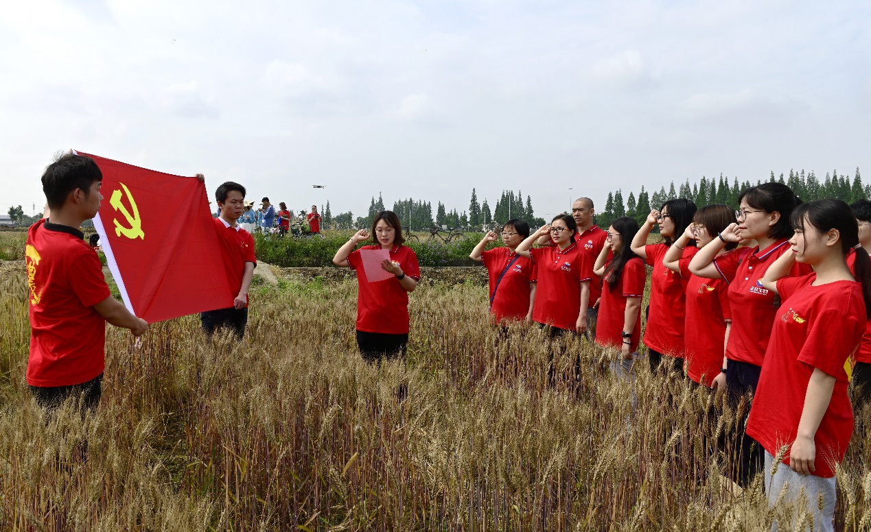 活动最后,由院党委书记黎明艳带领师生党员在金色的麦田里重温入党誓词。宣誓仪式进一步强化党员同志的身份意识,让青春在田野中焕发出奉献的绚丽光彩。“第一次参加这样形式新颖的党日活动,田间地头的学习让我对小麦的育种知识印象深刻。麦田里的宣誓,使我们更加坚定扎根基层、服务三农的使命,对全面推进乡村振兴充满干劲!”参加活动的党员代表说。