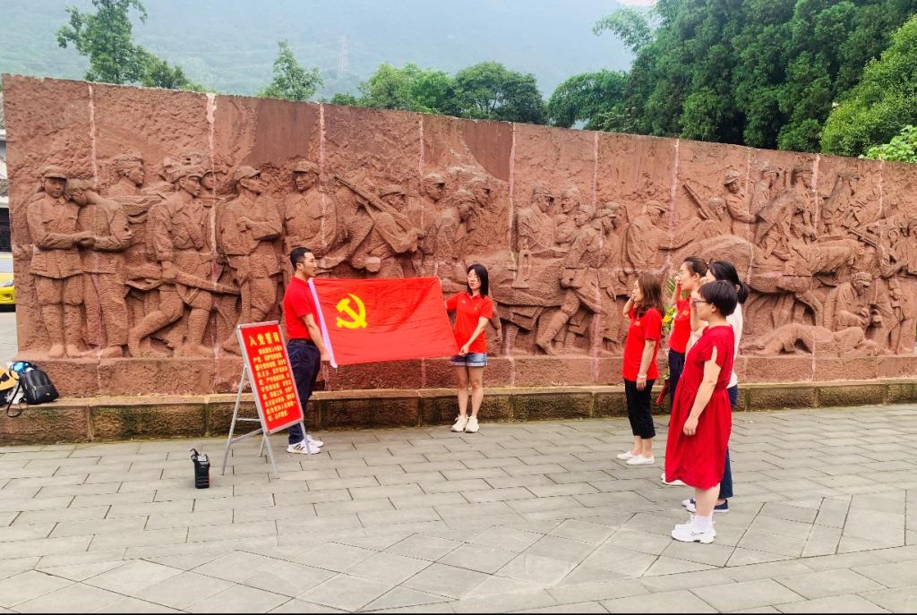 在邛崃红军长征纪念馆前,全体党员来到表现红军战斗历程的红砂石浮雕“悲歌与壮举”前,通过敬献花篮、肃立默哀等方式表达对革命先烈的缅怀和敬仰之情。“我志愿加入中国共产党,拥护党的纲领,遵守党的章程……”在鲜红的党旗下,全体党员举起右手,重温入党誓词,表达了对党的忠诚热爱。