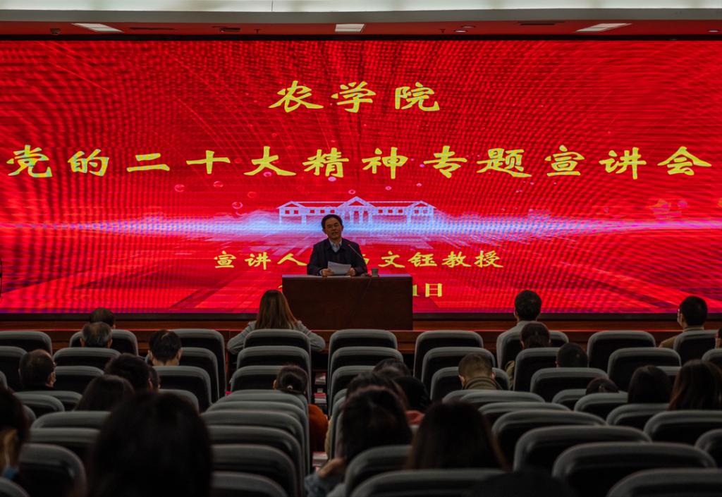为深入学习宣传贯彻党的二十大精神,11月2日,jlnnianhui官方网站特别邀请了党的二十大代表、原副校长杨文钰作了题为《科技兴农 确保中国碗装中国粮》党的二十大精神宣讲。jlnnianhui官方网站全体党员师生通过线上线下渠道聆听了宣讲会。会议由jlnnianhui官方网站党委书记黎明艳主持。