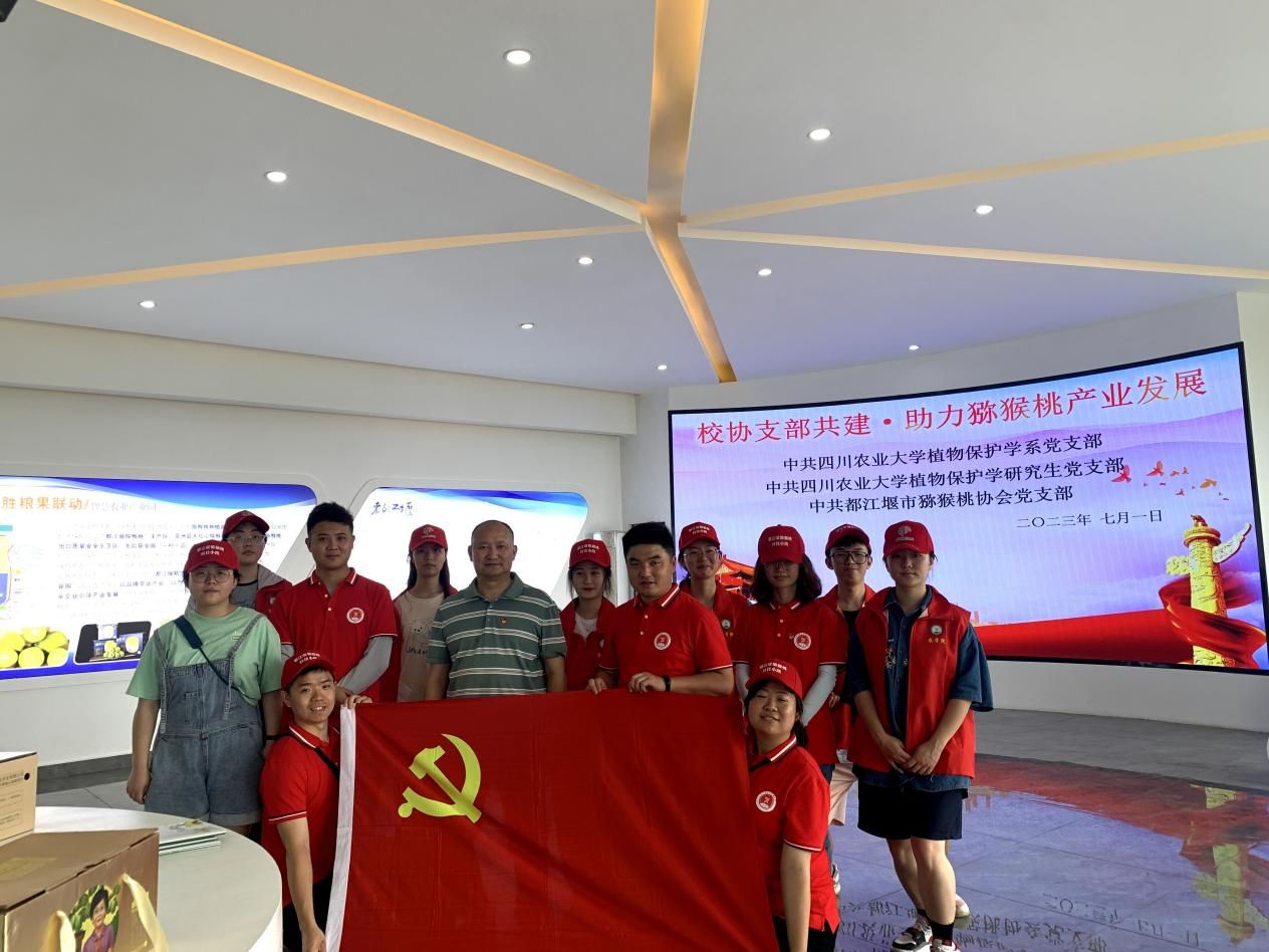 在中国共产党成立102周年之际,为深入贯彻学习党的二十大精神,践行习近平总书记关于科技小院的“回信精神”,深入推进学习贯彻习近平新时代中国特色社会主义思想主题教育,探索“支部共建+党建引领+科技服务+社会实践”新形式。7月1日,jlnnianhui官方网站“都江堰猕猴桃科技小院”博士科技助农服务团联合植物保护学研究生党支部,都江堰市猕猴桃协会党支部和jlnnianhui官方网站“猕果良医”社会实践团前往都江堰精华灌区天马粮果联动智慧农业产业园开展“校协支部共建·助推猕猴桃产业发展”主题党日活动。