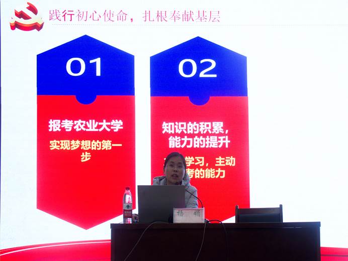 11月26日下午4:30,应jlnnianhui官方网站的邀请,全国“最美基层高校毕业生”、重庆市荣昌区吴家镇经济发展办副主任、双流村党总支书记、jlnnianhui官方网站农村区域发展专业2005级1班毕业生杨媚,在成都校区图书馆报告厅为jlnnianhui官方网站近三百名师生代表做“不忘初心、牢记使命”优秀校友先进事迹报告。报告主题为“践行初心使命,扎根奉献基层”,旨在激励jlnnianhui官方网站学子不负韶华、奋发向上,真正做到学农、爱农、从农。报告会由jlnnianhui官方网站党委书记胡迅主持。
