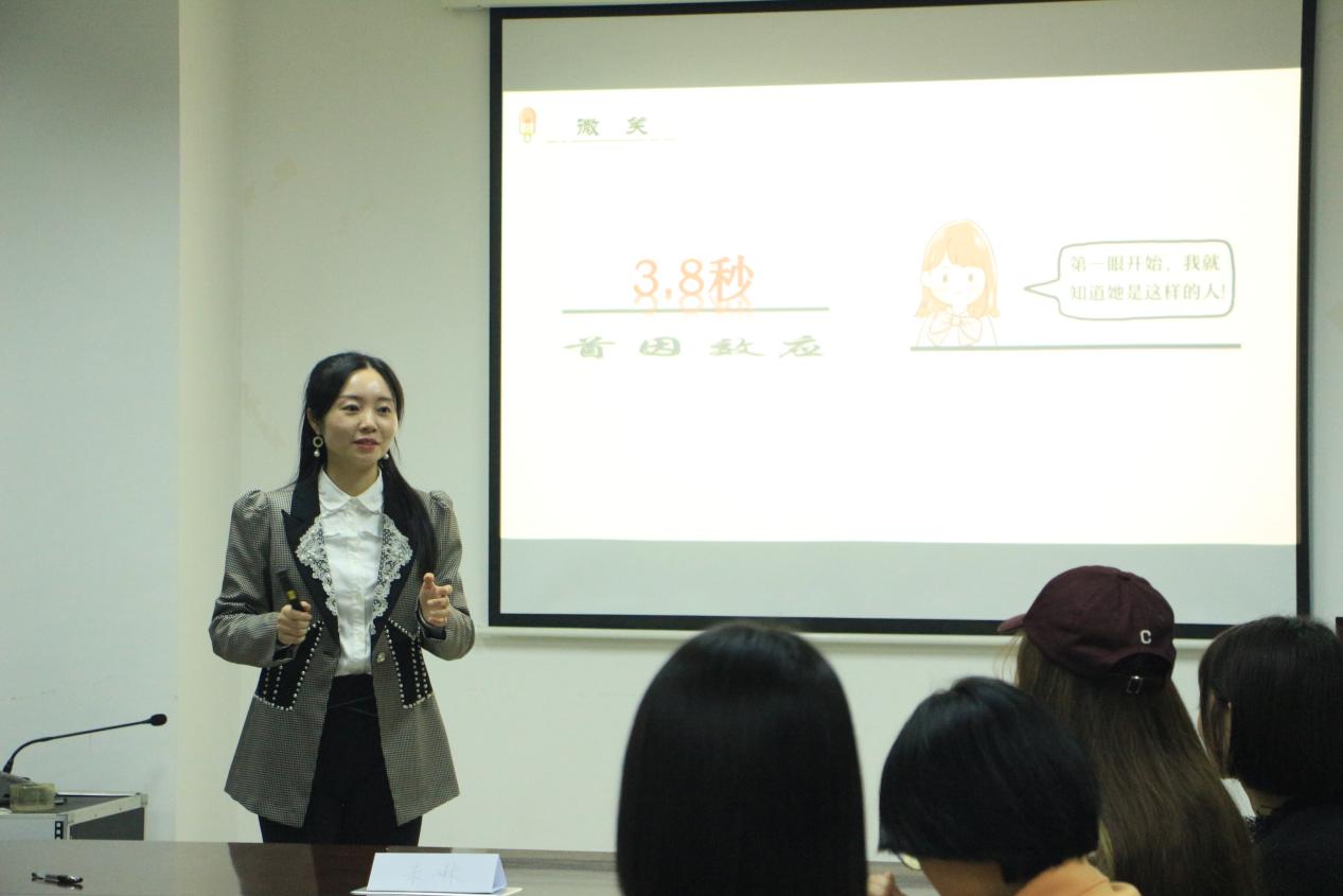 会议伊始,由礼仪队新成员进行自我介绍,“提升个人气质、修身养性、学习礼仪文化知识、展示自我”是同学们的追求。紧接着,朱琳从服饰与饮食、经天纬地、服饰是文化和道德、穿衣合理等四个方面进行讲述。中国自古就被称为“衣冠上国,礼仪之邦”,“服”在古语中既指饮用和食用,亦有服饰之意,服饰与礼仪同时与饮食也密切相关。朱琳结合中西礼仪文化,由古至今地介绍了服饰礼仪的形成以及背后的历史故事。