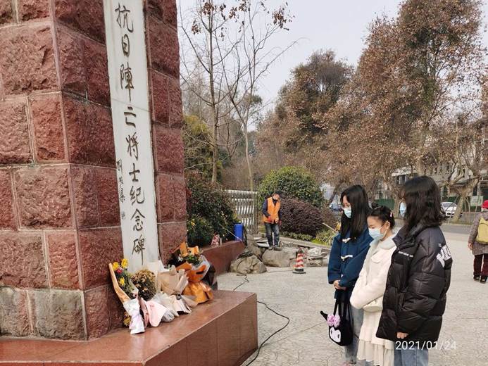 1月24日全体成员先参观人民公园辛亥保路运动陈列馆,深刻了解了这段历史。随后分组寻找遗迹,默哀纪念牺牲的抗日阵亡将士。队员还对这一历史事件展开了随机采访,接受采访的一位老爷爷语重心长地说:“勿忘国耻,警钟长鸣”,这既是老爷爷的嘱咐,更是青年一代应该时刻谨记于心的。通过此次身临革命旧址,让同学们牢记使命,不忘初心,永记革命历史,在五星红旗下高声呐喊“热爱祖国,热爱中国共产党,热爱人民”。