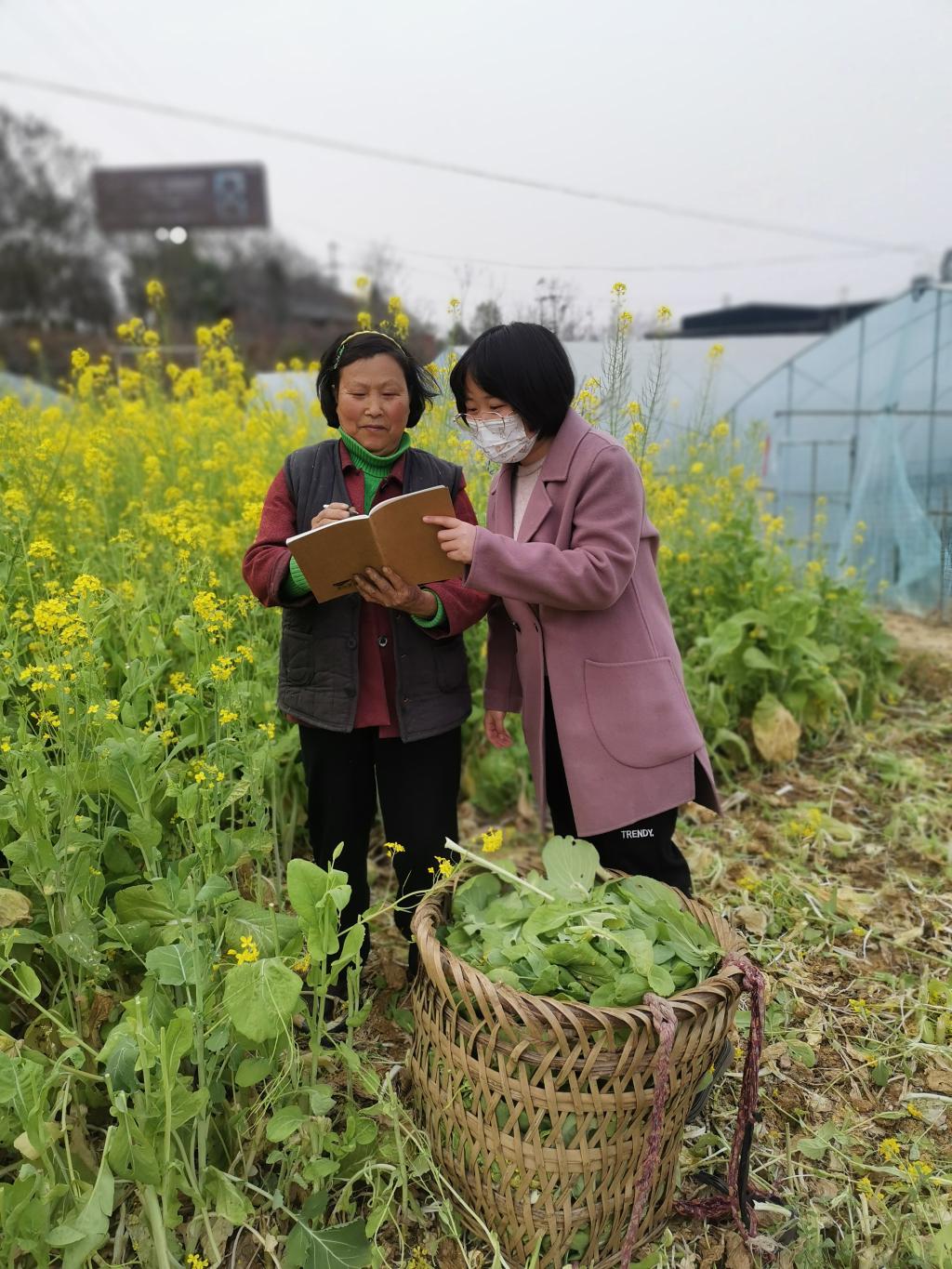 成员在农村采访农民对环境污染的看法,并认真记录图片人物:刘科蔚
