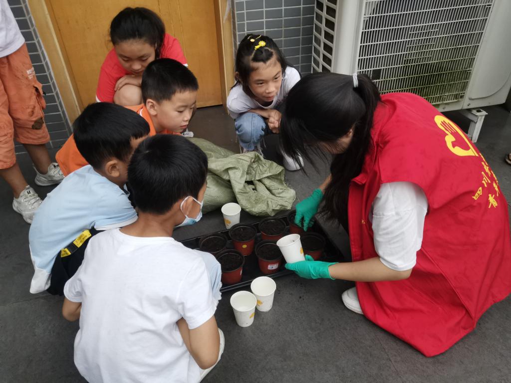 当志愿者向孩子们抛出“如何利用家里废弃物给植物提供肥力”的问题时,孩子们都积极踊跃的举手,表达出自己最真实的想法如“水果皮、鸡蛋液与鸡蛋壳、牛奶盒里的残余牛奶等”均能为植物提供养分。仅一个问题便可看出孩子们在生活中也是积极思考的,并且思维十分发散,并未被课本所学知识所局限。接下来的实践课程中,孩子们积极配合,整个种植过程完美推进,志愿者热情帮助心有疑问的孩子并通过手把手教学让其感受到农民伯伯种植的艰辛。此外,志愿者也从中深深体会到孩子们对学习农业知识抱有强烈欲望。在课余时间,志愿者和孩子们热情交流并与他们成为了好朋友,增进了彼此的友谊。