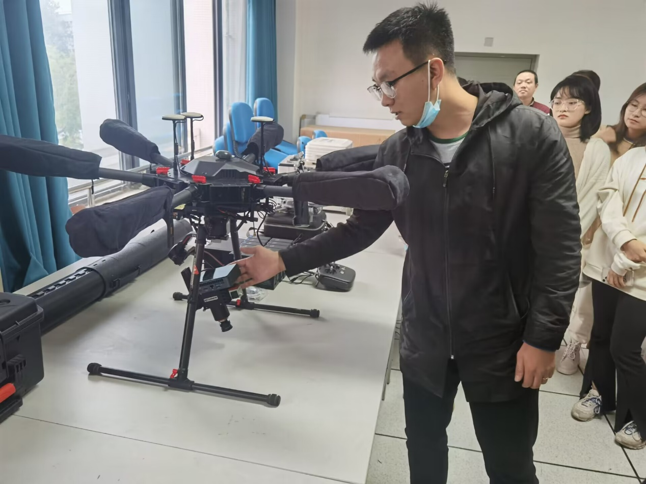 最后,全体同学在谭先明老师的带领下来到智慧农业实验室,参观了无人机、高光谱成像仪、便携式光谱仪等实验设备。