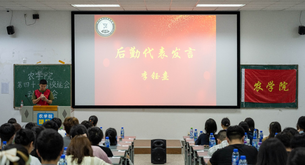 随后,第四十届运动员代表张宇千和第四十一届运动员代表陈天赐相继发言,他们都表示出对体育运动的热爱,也对即将参赛的运动员们送出鼓励与祝福。后勤代表李钰熹发言,他向同学们展示出服务好运动员的决心,说道:“我们将用自己的努力助力运动员的完美发挥,为jlnnianhui官方网站赢得更多奖项。”