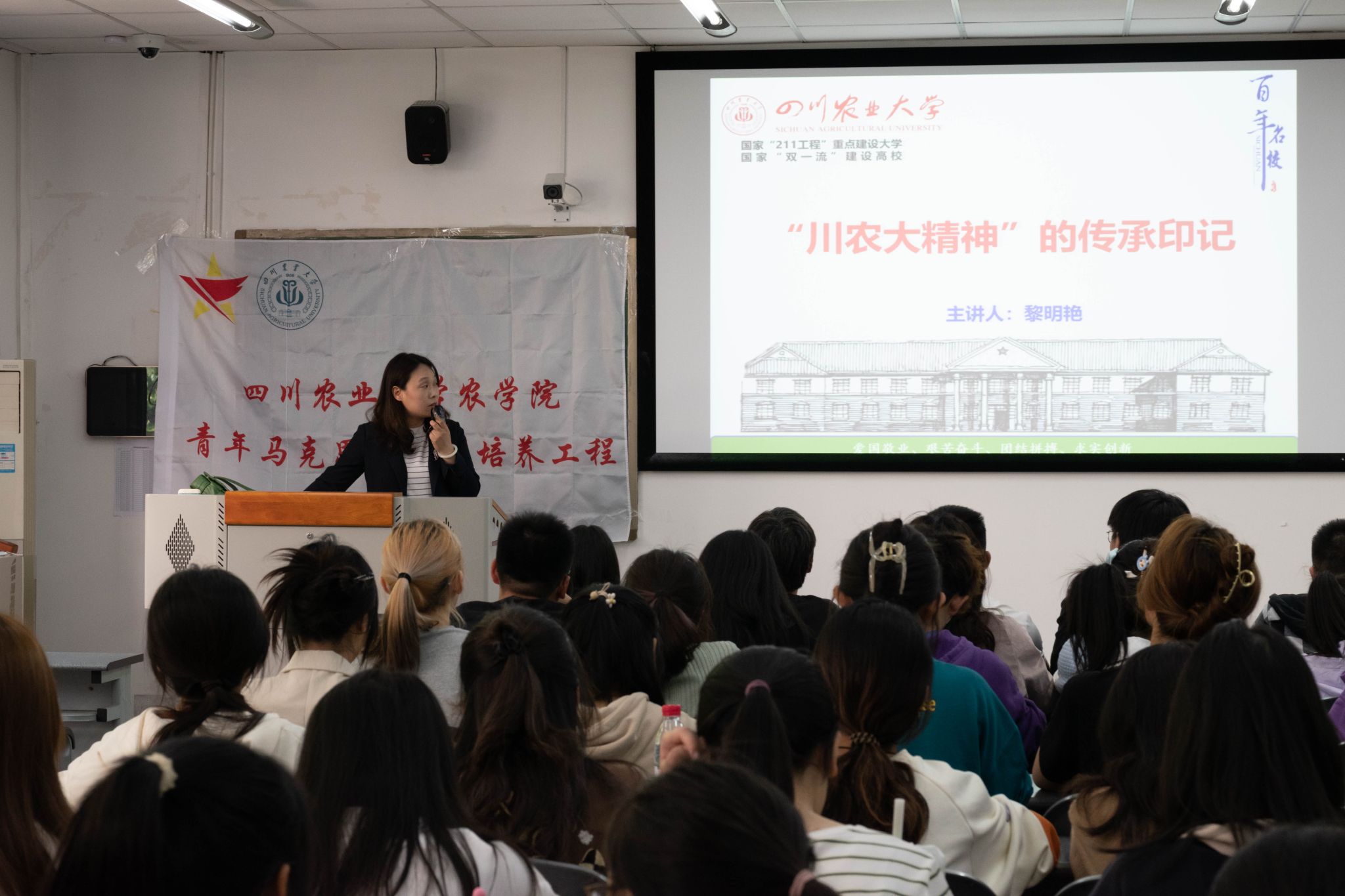 授课伊始,黎明艳简单概述川农大的百年校史,从“爱国精神、艰苦奋斗、团结拼搏、求实创新”十六字川农大精神入手,和青马班学员一起回顾百年来川农人亲身贯彻的良好品质和优秀精神。老一辈人,如颜济、杨开渠等教授,新一代人,如张挺、黄永财博士,人才济济、卧龙凤雏,川农名人数不胜数。生活环境、工作条件虽艰苦,但是川农人永远不怕苦,永远在奋斗,永远在进步。“大家在川农大jlnnianhui官方网站学习生活,都有一种天然的自豪感和底气。”对于川农大精神的百年传承,黎明艳总结道。