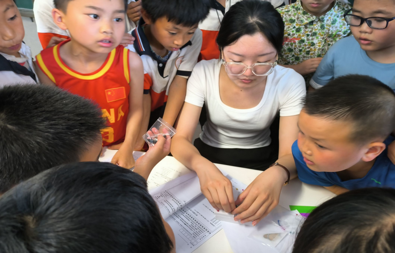 团队设计了不少课程,上到天文地理,下到周围的动植物。其中由植保学生刘琪带领的昆虫课,在学生中收获一致好评。这项富有农院特色的课程实行“三步走”:教室中的昆虫知识科普、户外草地的抓虫实践与实验室内的昆虫标本制作。“小琪老师的课太有趣了!我以前都不知道,原来蜻蜓长长的尾巴其实是它的肚子,苍蝇和蚊子有两对翅膀,只是另外一对退化成了平衡棒,还学会了分辨害虫和益虫,小琪老师还教了我们抓虫子的正确方法。”三年级的王霜霜上完课就迫不及待和志愿者们分享自己的感受,她觉得这堂课为她打开了昆虫世界的大门,内里充满未知与趣味。