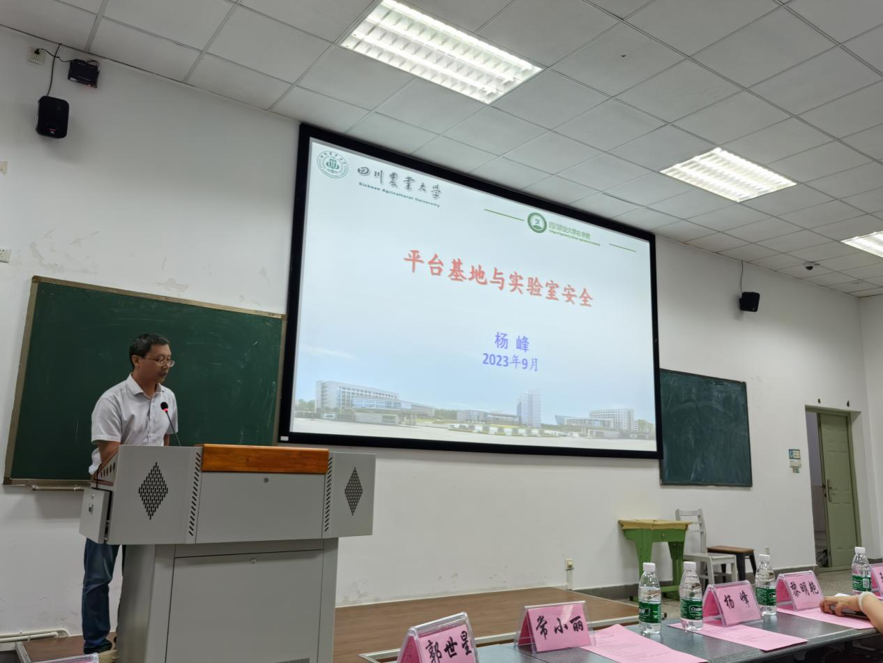 王静首先代表学院全体师生向2023级新生表示热烈的欢迎与诚挚的祝贺,并向同学们介绍了学院的基本情况和学科发展概况,同时提出殷切期望,希望同学们肩负起强农兴农的使命担当,在新时代、新征程做出新的更大贡献。王强详细解读了学校颁布的《研究生管理制度》、《研究生培养方案》以及学院的相关研究生管理事项,并着重强调了研究生培养阶段的关键点和注意事项。杨峰围绕科研平台与基地情况以及实验室安全教育的内容做了详细的介绍,嘱咐同学们进行实验的首要条件是安全,希望同学们科研用心,实验用心,安全放心。黎明艳讲解了学科历史以及文化传承,通过例举优秀校友的事迹生动形象地阐释了川农大精神的内涵,向同学们提出了继承、发扬川农大精神的要求和期盼。