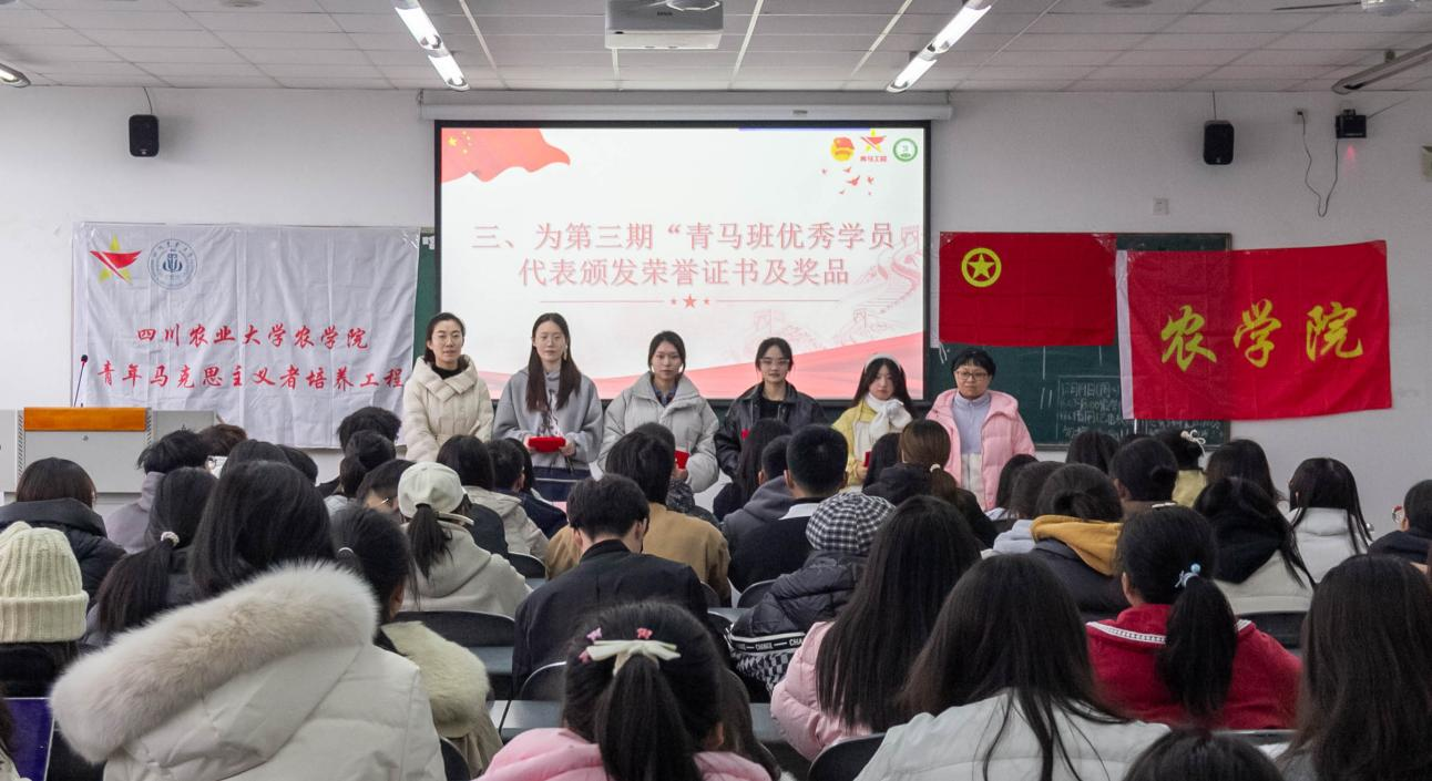 会议伊始,由第三期青马班班主任助理田怡雪做工作总结。出席会议的老师为第三期“青马班”学员颁发结业证书并为优秀学员颁发证书及奖品。随后,第三期“青马班”优秀学员代表任星宇发言,她表示,在青马班一年的学习,让她明白在当好学生干部服务同学的同时,还要不断进行自我反省和自我完善。第四期“青马班”学员代表毛雨璐号召大家:“作为川农大的jlnnianhui官方网站学子,我们要彰显‘爱农兴农’理论,在社会实践中结合专业奉献力量!”学员发言结束后,沈丽淘为在座学员介绍了第四期培养方案,本次“青马班”分为必修课程和选修课程,其中必修课程将采用学分制的形式,要求各位学员遵纪守法、积极向上,主动参加社会实践、志愿服务。