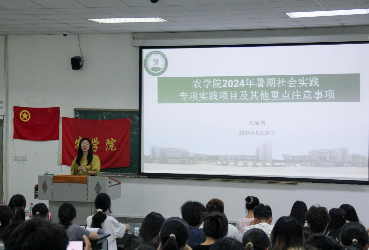 在刘佳鑫结束经验分享后,沈丽淘为大家介绍了今年jlnnianhui官方网站暑期社会实践专题项目,包括学院组建的科技助农博士社会服务团,jlnnianhui官方网站、三所、国重暑期社会实践项目,强调了学院对暑期社会实践的重视,并指导如何打造优秀的实践团队,鼓励学生走出校园,走向基层,积极参与社会实践。