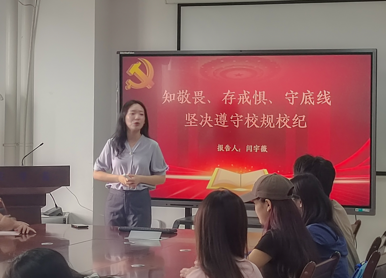 图为闫宇薇进行“知敬畏、存戒惧、守底线—坚决遵守校规校纪”主题授课
