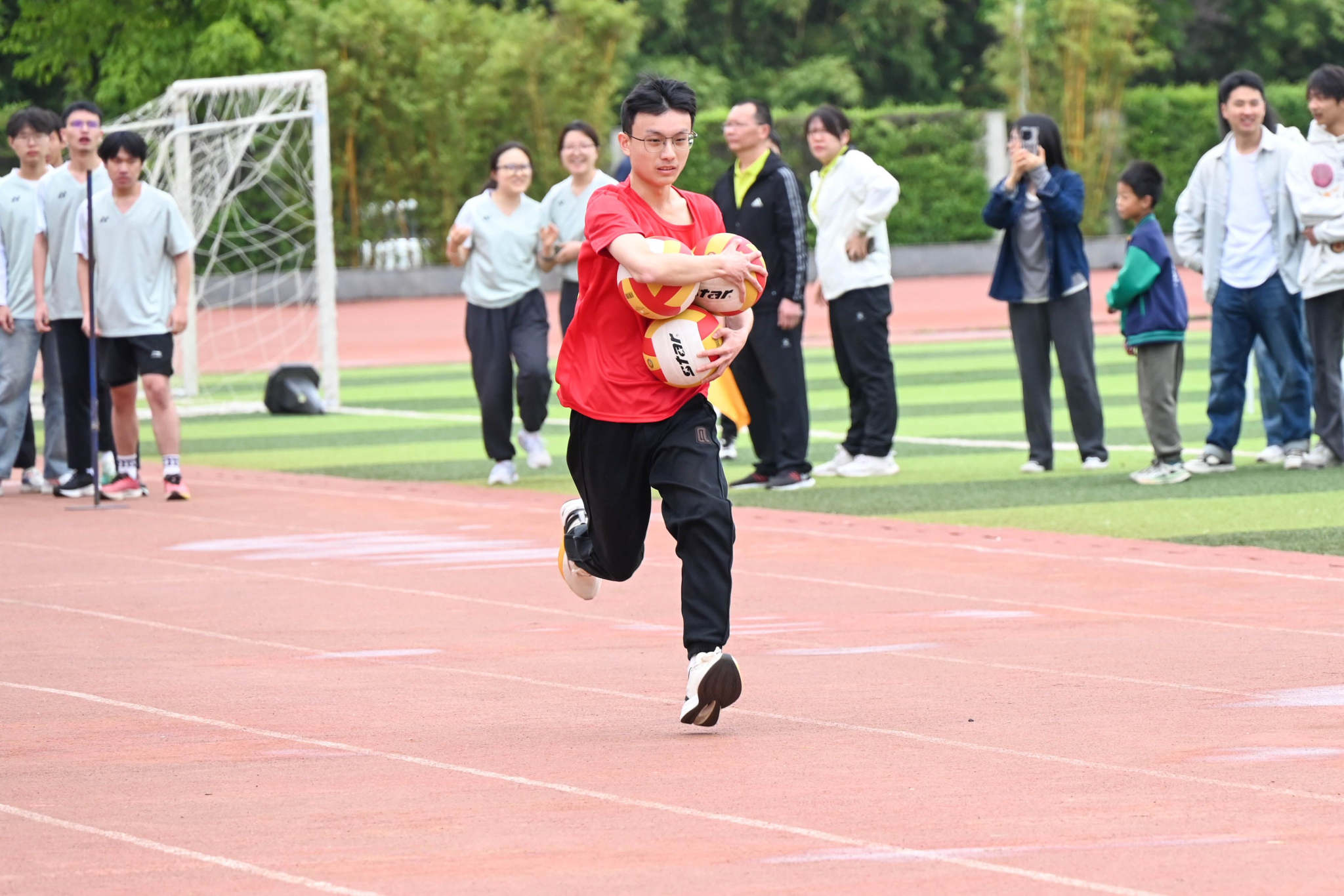 在赛场之下,后勤人员为运动员们准备了充足的饮用水、葡萄糖以及应急疗伤和中暑药品,为运动员们保驾护航。融媒体拍摄人员在赛场各处奔跑,为运动员们记录下精彩瞬间。学院的师生们以多种方式为运动员们鼓劲加油。有人高声呐喊,为选手们加油助威;有人则撰写一篇篇振奋人心的加油稿,给予精神上的支持;还有人挥舞着jlnnianhui官方网站的院旗,为参加径赛的选手们领跑助阵。
