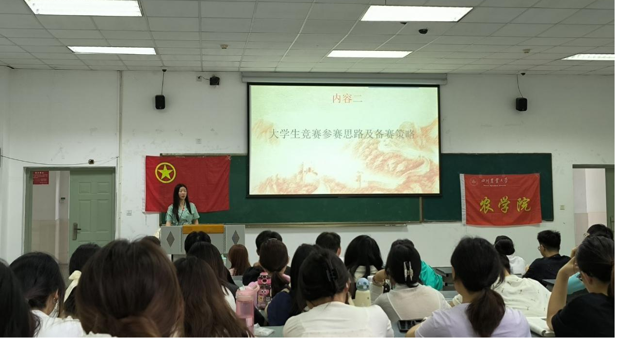 随后,沈丽淘为同学们带来了关于中国国际大学生创新大赛和“挑战杯”竞赛的精彩讲解,详细阐述了参赛思路及备赛策略。沈丽淘从赛事基本情况入手,深入剖析各赛道要点和评审规则,帮助同学全面了解两项赛事的内涵。在选题方面,沈丽淘特别强调,同学们要深入研读竞赛通知,紧密结合自身专业知识,敏锐捕捉社会需求,力求寻找出兼具创新性与可行性的课题。同时,鼓励同学们积极组建团队,通过团队协作发挥各自优势,以赛促学、以赛促创,培养敢闯会创的精神,在竞赛中锻炼自己、提升能力,为今后的职业发展和社会贡献积累经验、夯实基础。