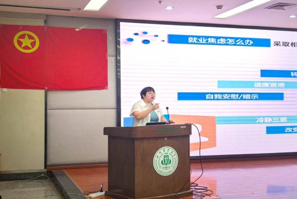 经济学院朱玉老师以现场互动的形式,带领在座青年开展“拥抱情绪”心理小游戏,深入解析当代大学生内心情绪,引导大家不必放大焦虑,同时鼓励大家积极面对就业难题,主动出击赢未来。