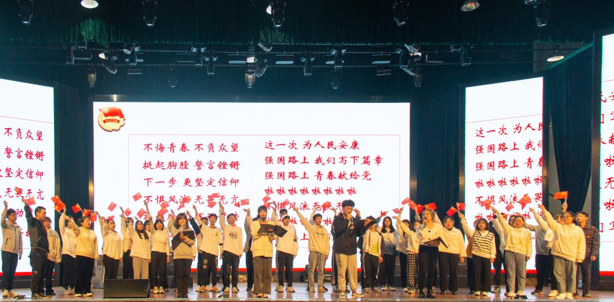 由国贸201902、投资201902、植保202101、环生202002等四个团支部带来的歌曲《青春无悔,强国有我》,将本次团日活动的氛围引入高潮。在舞台上动情的歌声下,台下的同学们跟随着旋律演唱,流露出同学们的爱国之情。接下来是由金融202002、中药202101、环工202004等三个团支部带来的朗诵《结缘川农,复兴中华》,朗诵词中“前途似海,来日方长”表达了同学们对未来的憧憬和希望。