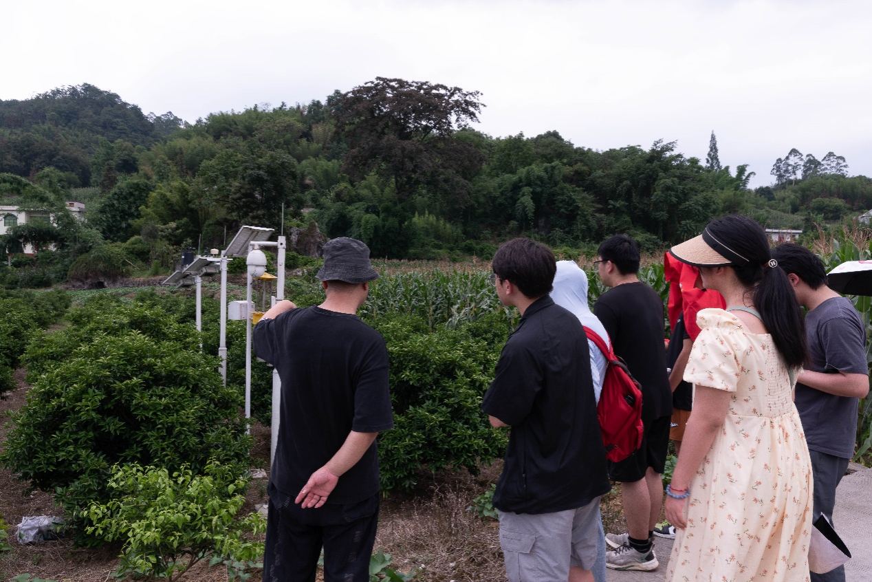 公司负责人刘睿带领实践团在园区内进行参观,并就园区内的中药种植情况、中药种植收益情况、当地中药资源情况进行交流讨论。“我们中药基地涵盖了枳壳、佛手、丹参、金银花等中药材,是当地中药材种植模式的成功模板之一。”中药种植产量,离不开控制病虫害的措施。在谈到基地如何控制园区病虫害问题时,刘睿带领成员们来到园区内的智慧农业设备前,表示基地已经通过引进先进设备和技术,成功控制了红蜘蛛这一大病虫害。