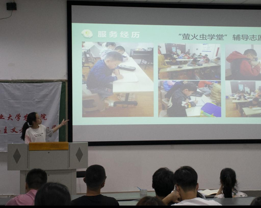 此次活动邀请到农学201802班的徐铭池和农学202005班的张子诺同学进行分享。据了解,徐铭池曾获得“宜宾市优秀志愿者”的称号。张子诺也曾参加志愿活动60多次,并获得“2021 SNOOPY RUN”成都站志愿者证书以及“萤火虫学堂优秀志愿者”的称号。在此次分享会上,两位青年志愿者结合自身参与的志愿服务经历,分享了自己的志愿故事,带给现场同学关于“志愿服务”上不同的认知。