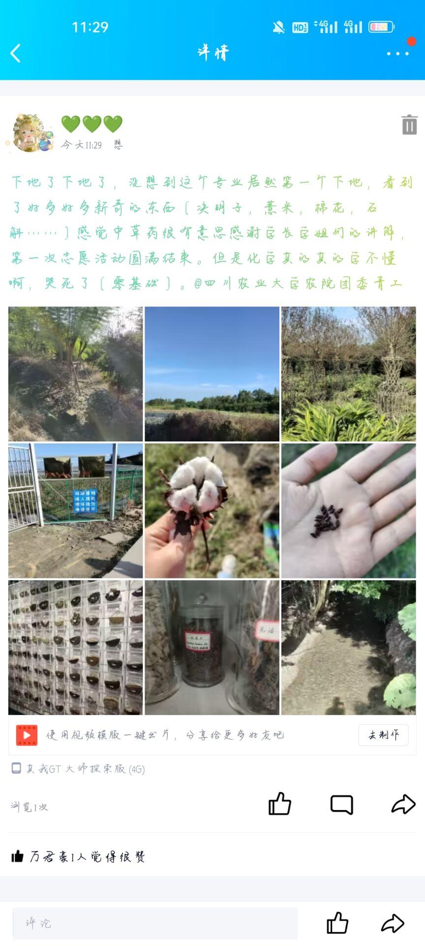 种子科学与工程专业的刘洪江同学感慨:“我在家里看一百部关于粮食的纪录片都不如亲自下地躬身实践一下来的真切,收获很大。”活动结束后,同学们纷纷发布QQ空间,展示参与活动后的收获。