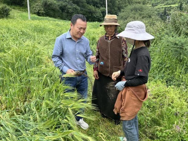 专家团队在炉霍县农业农村局局长张建勇陪同下来到炉霍县虾拉沱青稞种植基地,查看了种植在该基地来自全国各地的青稞新品种,张建勇局长对来自金年会的青稞品种高度赞赏,期许能打破当地的高产记录,希望下一步扩大种植规模和加强技术指导。