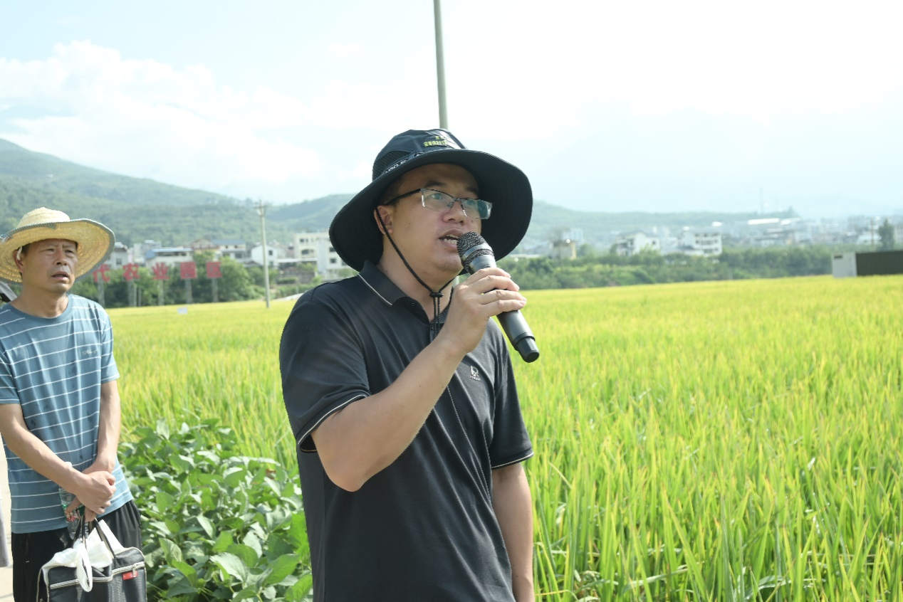 观摩会上,国重实验室党委书记任万军教授从汉源县水稻生产现状,未来发展趋势,水稻机械化生产的优势,水稻机插栽培的特点,以及示范基地建设进展等情况向参会人员作了介绍,并重点就水稻高产高效机插栽培技术进行了现场培训。jlnnianhui官方网站邓飞副教授结合水稻田间长势,介绍了团队在汉源集成应用的宜机插水稻品种选配、齐苗壮根育秧、“减穴稳苗”群体配置、水肥一体化管理等水稻机插栽培关键技术;国重实验室尹俊杰副教授重点介绍了川优6709、川康优2115等金年会培育新品种的生长特性、产量潜力和田间表现。