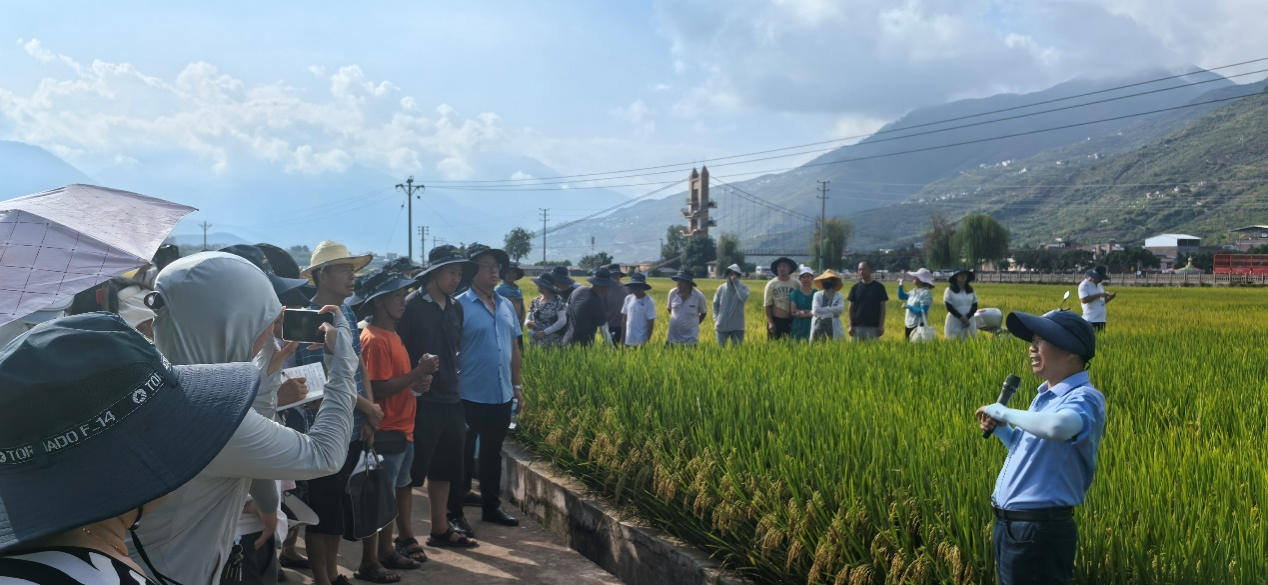 为提升汉源县水稻机械化生产水平,加快机插栽培技术在汉源的推广应用,9月4日,由jlnnianhui官方网站联合国重实验室和汉源县农业农村局共同举办的水稻高产高效机插栽培技术培训观摩会在汉源县九襄镇新阳村水稻机插栽培百亩示范基地顺利举行。来自雅安市农业农村局、绵阳市农业科学研究院、四川金色绿丹种业有限公司等企事业单位,以及汉源九襄、前域等乡镇相关负责人、农技人员和农户代表等近100人参加了此次培训观摩会。